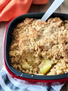 Ein schneller und unglaublich leckerer Apfelcrumble aus dem Airfryer, perfekt für spontanen Heißhunger auf etwas Warmes, Fruchtiges mit knusprigen Streuseln.