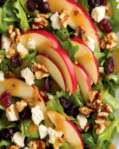 Ein erfrischender Apfel-Walnuss-Salat mit knackigen Äpfeln, gerösteten Walnüssen und einer cremigen Ahorn-Balsamico-Vinaigrette. Perfekt als Beilage oder leichtes Hauptgericht.