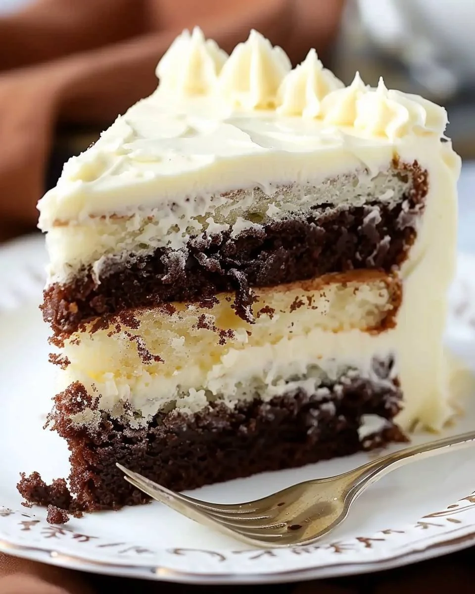 A decadent white layered cake with a fudgy brownie base, perfect for special occasions. This cake is fluffy, fudgy, and sure to impress!