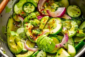 Dieser Avocado Salat ist wirklich ein kleines Wunder, weil er so vielseitig ist und dich einfach gut fühlen lässt. Manchmal braucht man einfach was Leichtes, das trotzdem satt macht, und genau das bietet er. Die Kombination aus der cremigen Avocado, der knackigen Gurke und der feinen Schärfe der Zwiebel ist einfach unschlagbar, und das Dressing gibt dem Ganzen den letzten Schliff. Ich erinnere mich noch, wie ich das erste Mal eine Avocado probiert habe, war das ein Erlebnis, so anders und doch so gut. Seitdem sind sie aus meiner Küche nicht mehr wegzudenken, besonders in einem gesunder Salat wie diesem. Es ist auch toll, wie schnell das geht, man muss nicht lange in der Küche stehen und kann die Zeit für andere Dinge nutzen.