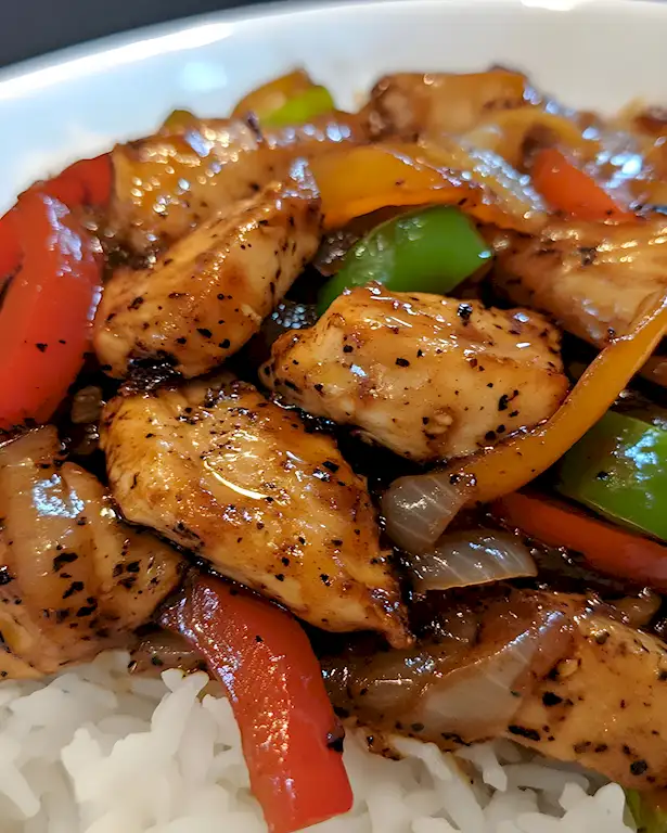 Ein schnelles und würziges asiatisches Pfannengericht mit zartem Hähnchen, knackigem Gemüse und einer intensiven schwarzen Pfeffersoße. Perfekt für einen schnellen und gesunden Feierabend.