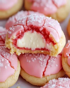 Nachdem deine Käsekuchencookies aus dem Ofen kommen und etwas abgekühlt sind, kommt der schönste Teil: die Dekoration! Der rosa Zuckerguss und der Glitzerzucker machen sie nicht nur noch hübscher, sondern geben ihnen auch den letzten süßen Kick. Stell dir vor, wie die kleinen Glitzerpartikel im Licht funkeln – das ist doch ein echter Hingucker auf jeder Kaffeetafel. Diese Cookies sind nicht nur ein Genuss für den Gaumen, sondern auch für die Augen. Sie sind perfekt für einen gemütlichen Nachmittag mit Freunden oder als süße Überraschung für deine Familie.