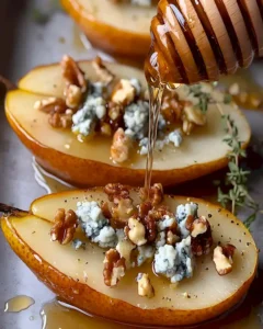 Ein elegantes und einfaches Rezept für gebackene Birnen mit Blauschimmelkäse, Walnüssen und Honig. Perfekt als Vorspeise, Beilage oder Dessert.