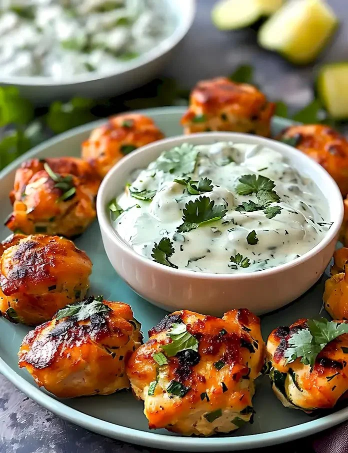 Saftige Hackfleisch-Zucchini-Kugeln mit Käse und Koriander, goldbraun gebacken. Dazu eine frische Koriander-Joghurt-Sauce – ideal als Party-Snack oder leichtes Essen.