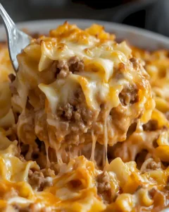 Ein cremiger und herzhafter Auflauf mit Rinderhackfleisch, Nudeln und viel Käse, der einfach zuzubereiten ist und perfekt für ein schnelles, aber leckeres Abendessen.