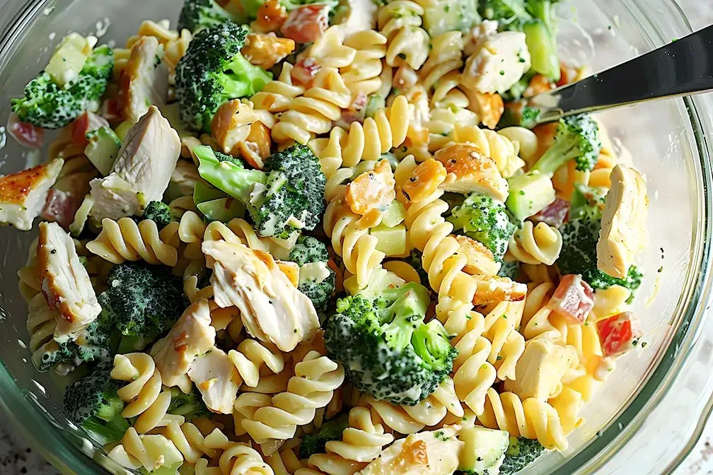 Hier ist eine einfache Schritt-für-Schritt-Anleitung zur Zubereitung Ihres Hühnchen-Brokkolipasta-Salats: