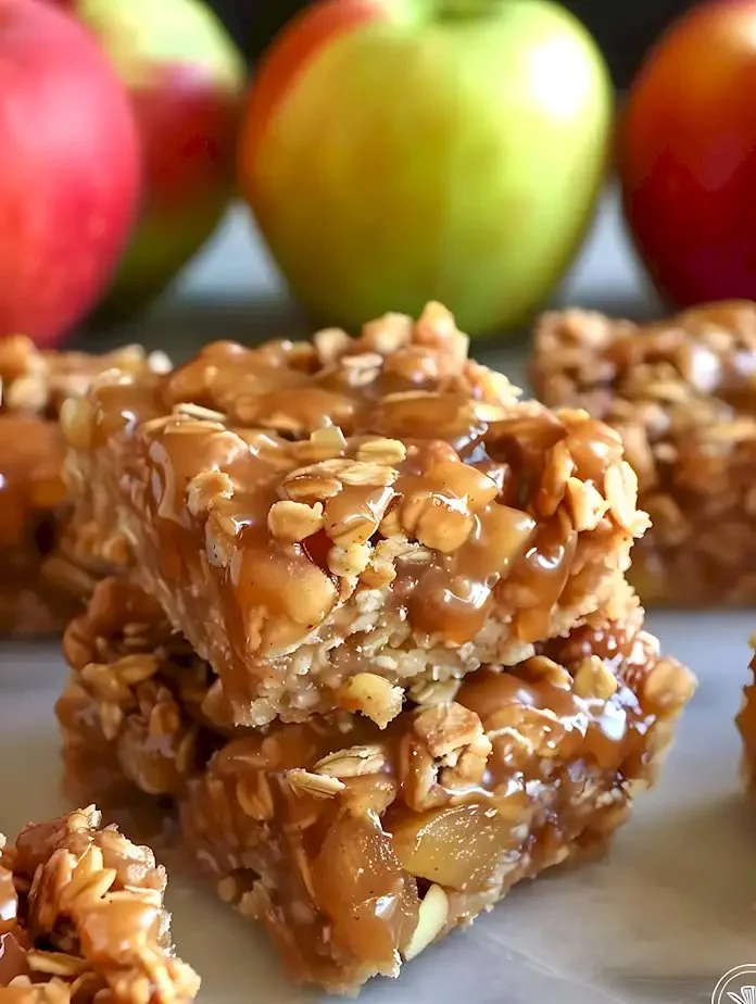 Köstliche Riegel aus Haferflocken, Äpfeln und Karamell, perfekt für ein schnelles Frühstück oder als Snack. Super einfach zuzubereiten und mit wenigen Zutaten gemacht. Eine himmlische Kombination aus süßem Karamell und frischen Äpfeln.