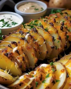 10. Servieren: Nimm die fertigen Hasselback Tornado Kartoffeln aus dem Ofen, lass sie kurz abkühlen und genieße sie pur oder mit einem Dip.