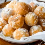 5. Bissen frittieren: Lege die Teigbällchen in einer einzigen Schicht in den Korb, achte darauf, dass sie sich nicht berühren. Frittiere sie für 5-7 Minuten und schüttle den Korb nach der Hälfte der Zeit einmal durch. Die Bissen sind fertig, wenn sie goldbraun und aufgegangen sind.