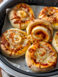 Schnelle und einfache Pizza-Brötchen aus dem Airfryer, perfekt für einen spontanen Snack oder als Beilage. Knusprig, lecker und in wenigen Minuten zubereitet.