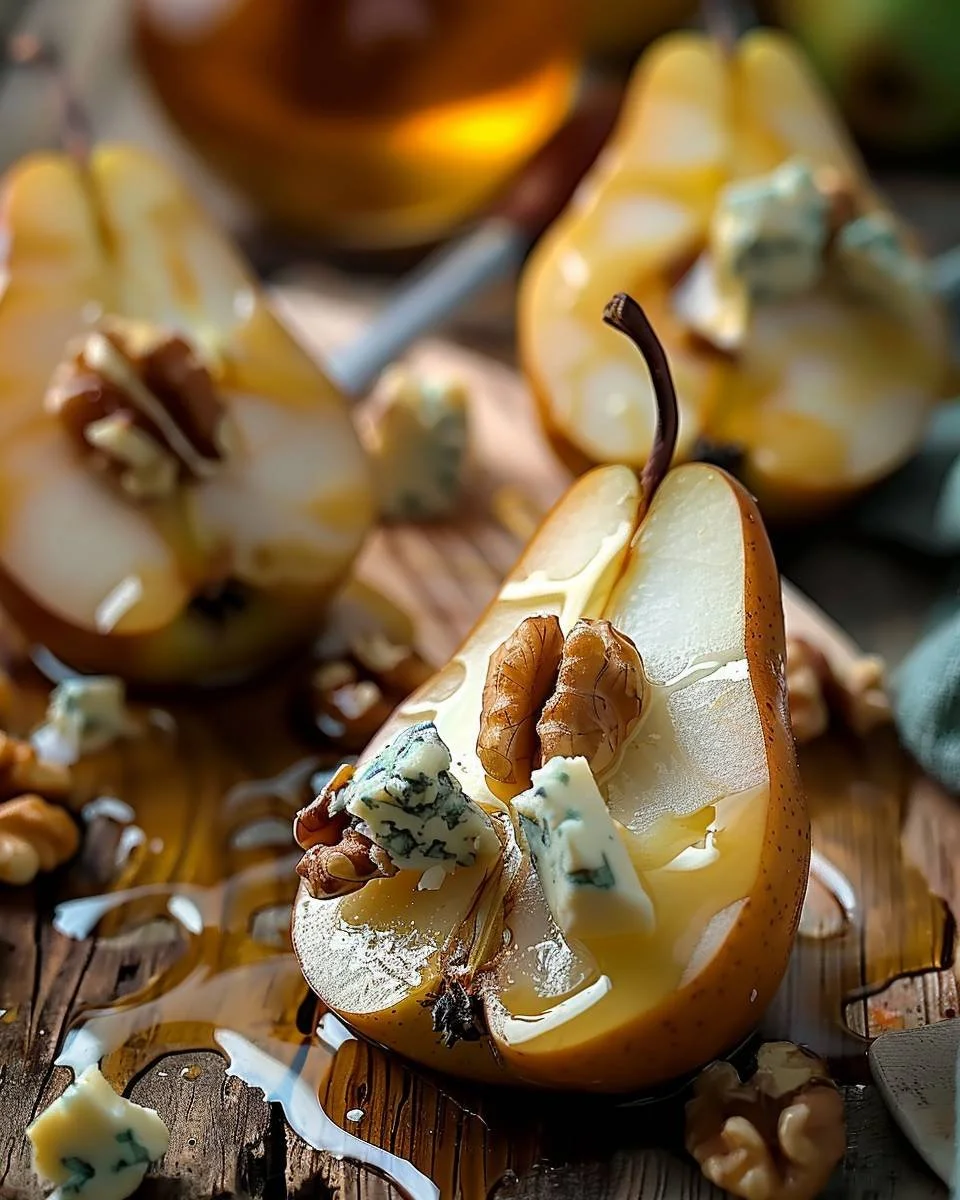 Ein köstliches Zusammenkommen aus süßen Birnen, würzigem Blauschimmelkäse und knackigen Walnüssen. Perfekt als Dessert, Vorspeise oder Snack.